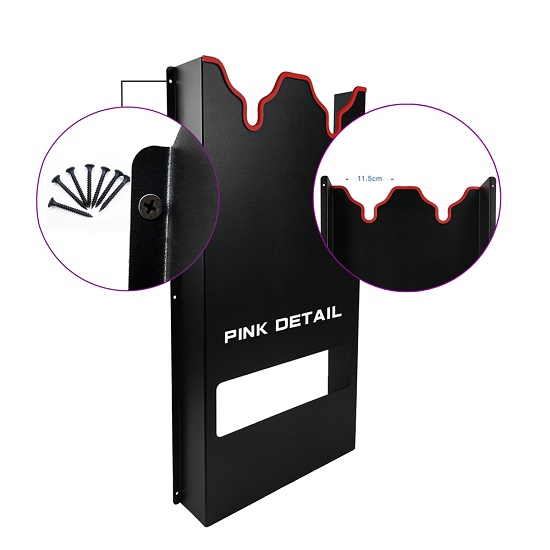 PINKDETAIL Double Position Polisher Racks are designed to be wall mounted and create the perfect place to store your dual action and rotary buffers. The polisher holders are manufactured from a high grade powder coated Iron with laser cut logo. Each feature has been well thought out and provides the maximum safety and security for your expensive machines. The rubber lined lip protects the underside of your polisher, while the bottom rack can be used for cord storage, bottle storage, or anything storage! Keep your garage clean and organized and your tools safe with PINKDETAIL Polisher Racks!