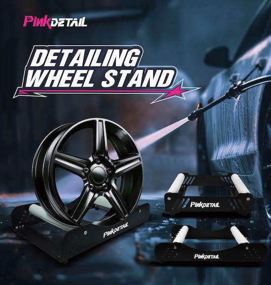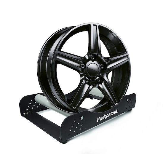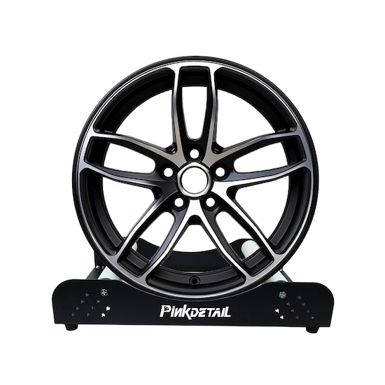 PINKDETAIL rolling wheel detailing stand is made of high-quality, durable black steel, precisely cut and bent, finally coated with a powder finish, both inside and outside, to provide an additional protective layer against oxidation. Bottom rollers with a length of 300mm and a top with a length of 400mm will match the rims in size from 14 "to 22". High-quality rubber feet keep the stand in one position during all work. Thanks to the special rear bends, the bail is very stable even with massive wheels.
